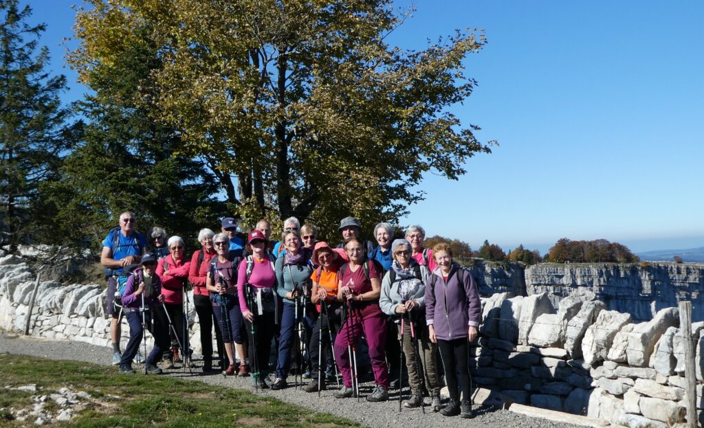 Un grand merci à Catherine Sorret pour l’organisation de ce we, très réussi : 2 randos incontournables dans le Val de Travers, inconnues de la plupart des participants, auxquelles il faut ajouter les superbes couleurs d’automne sous le soleil et la soirée à Morteau très conviviale, c’était parfait. L’absence d’Alain Staniszewski a été regrettée, il devait assurer la rando du dimanche mais des ennuis de santé l’en ont empêché. Ce qui explique quelques hésitations pour trouver le « saut du Brot » le dimanche, la rando n’avait pas été reconnue, faute de temps.